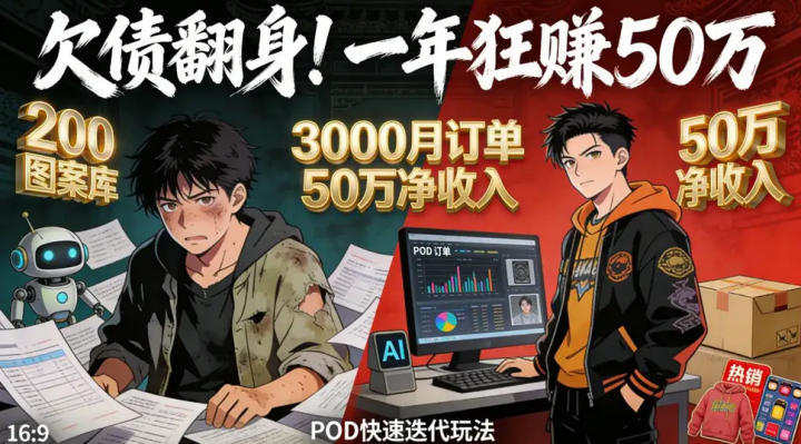 4.冲刺期(11-12月):自动化部分流程,批量生成变体。抓住双11、春节旺季大促,确保全年总收入超50万,债务一笔勾销,剩余资金再投资扩大。